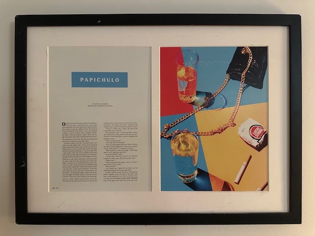 Before my book came out, Vice had a Fiction issue and decided to publish an excerpt. I don’t think they paid anything, but I was really honored. In fact, the page with the title I took out and framed, and it’s still on my wall all these years later.